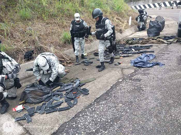 Ante lo sucedido, los federales se trasladaron a temprana hora a la altura del kilómetro 71 donde implementaron estrategias que lograron implementar, lo que produjo resultados positivos y lograron asegurar armas largas y de alto poder de uso exclusivo del Ejército Mexicano y a varios sujetos.