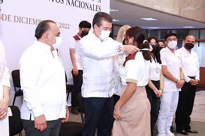 “Tengan confianza, no les vamos a fallar; vamos a seguir haciendo más con menos, pero con calidad; le apostamos con todo a la niñez y juventud para que puedan alcanzar sus aspiraciones y tengan mejor calidad de vida. Los que antes eran invisibles, hoy son los primeros protagónicos de este gran movimiento de México”, enfatizó al reconocer el apoyo de la Federación, a través de las Becas del Bienestar y las Universidades Benito Juárez.