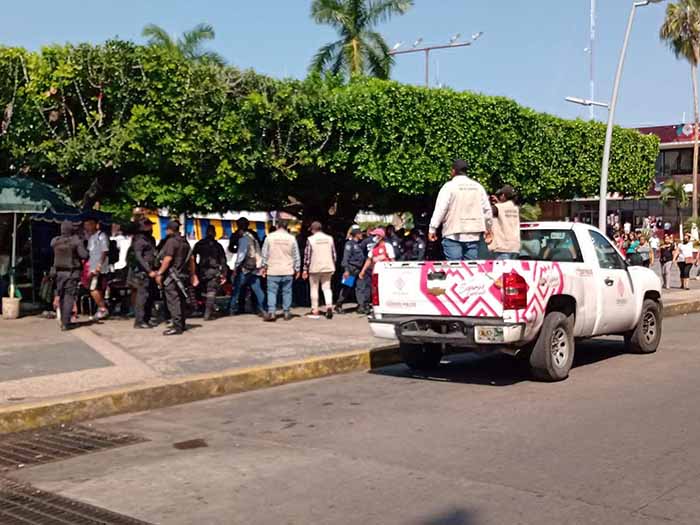 Tapachula, Chiapas; 16 de Diciembre del 2022.- Funcionarios de diversas dependencias de Gobierno, así como elementos de varias corporaciones policiacas, realizaron en la mañana de este viernes un operativo masivo para desalojar en el primer cuadro de la Ciudad a vendedores ambulantes, extranjeros y mexicanos, y para poner orden en este sector.