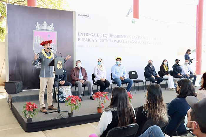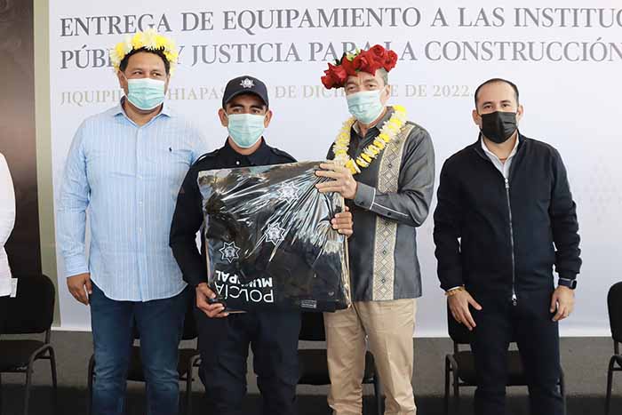 Con la finalidad de optimizar la capacidad de respuesta e inteligencia policial, el gobernador Rutilio Escandón Cadenas entregó una patrulla, uniformes y equipamiento a policías municipales de Jiquipilas, donde reiteró el compromiso de cuidar la integridad del pueblo chiapaneco a través de la dignificación de la labor de las mujeres y hombres policías, así como el establecimiento de estrategias conjuntas.
