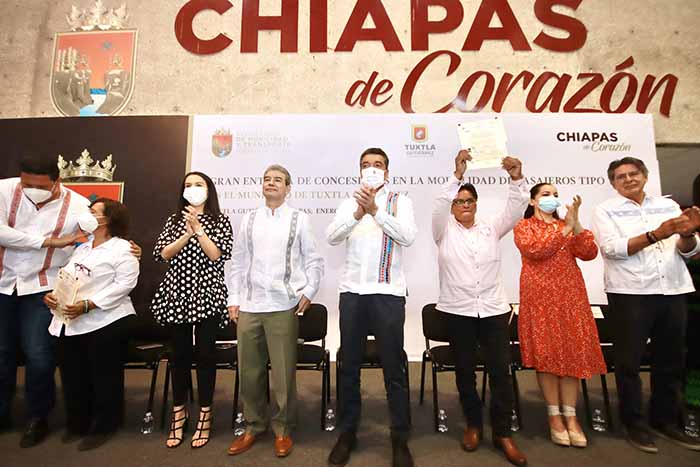Ante las y los transportistas beneficiados, entre ellos personas con discapacidad permanente, el mandatario chiapaneco celebró este acto que no sólo representa justicia social para el pueblo, sino que es una fuente de ingreso de una familia y certeza en las y los usuarios de ese servicio; además, con ello, dijo, se combate el empleo informal y se da paso a la legalidad en la prestación de un servicio de transporte público seguro y de calidad.
