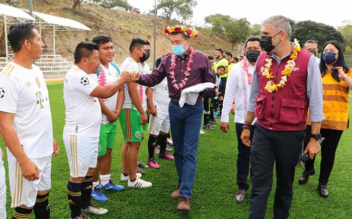 A su vez, el secretario de Obas Públicas, Ángel Torres Culebro, celebró que esta inauguración se diera con un partido entre las leyendas de Osumacinta y las de San Fernando, pues, dijo, eso es lo que Rutilio Escandón busca: “Promover la unidad entre los pueblos, que convivan de forma sana en un espacio digno, como este nuevo campo con pasto sintético y muros de contención, que está iluminado y da mayor seguridad”.