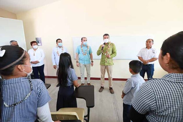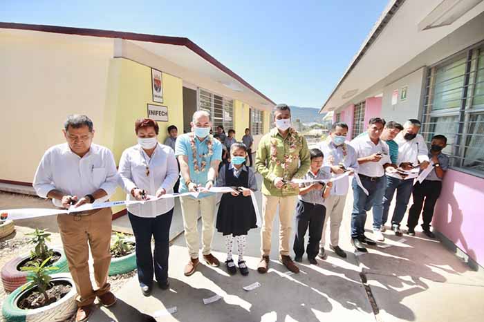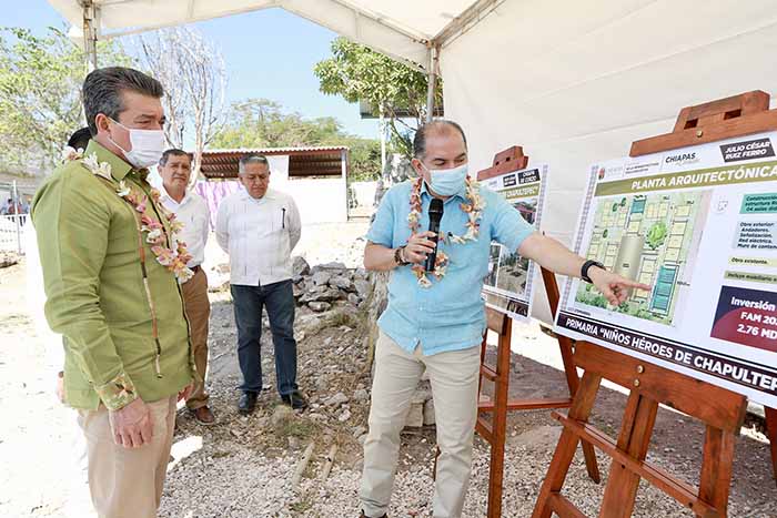 En el municipio de Chiapa de Corzo, el gobernador Rutilio Escandón Cadenas inauguró cuatro aulas en la Escuela Primaria “Niños Héroes de Chapultepec”, donde garantizó que se trabaja para que nada haga falta a fin de que la niñez y la juventud puedan sacar adelante sus aspiraciones de desarrollo y progreso a través de la educación.