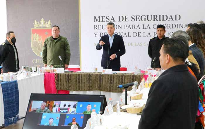 Tuxtla Gutiérrez, Chiapas.- En el marco de la Mesa de Seguridad Estatal que se llevó a cabo en San Cristóbal de Las Casas, el gobernador Rutilio Escandón Cadenas reconoció los principios y valores del pueblo de Chiapas para mantener el orden y la paz, destacando que en las últimas 72 horas correspondientes a los días 17, 18 y 19 de febrero se registró saldo blanco en los delitos de homicidio doloso, feminicidio, secuestro y robo de vehículo.