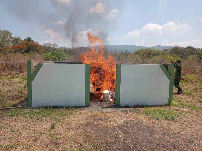 Lo incinerado incluyó cuatro gramos 800 miligramos de Clorhidrato de Cocaína, 76 gramos de Cocaína, 74 gramos 700 miligramos que contiene Clorhidrato de Cocaína, un kilo cinco gramos 500 miligramos que contiene Cocaína, 71 kilos 496 gramos 800 miligramos de Marihuana, 15 kilos 503 gramos 720 miligramos de Clorhidrato de Metanfetamina.
