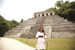 Al concluir el evento, Sasil de León realizó una visita a la zona arqueológica de Palenque, acompañada por un grupo de mujeres.