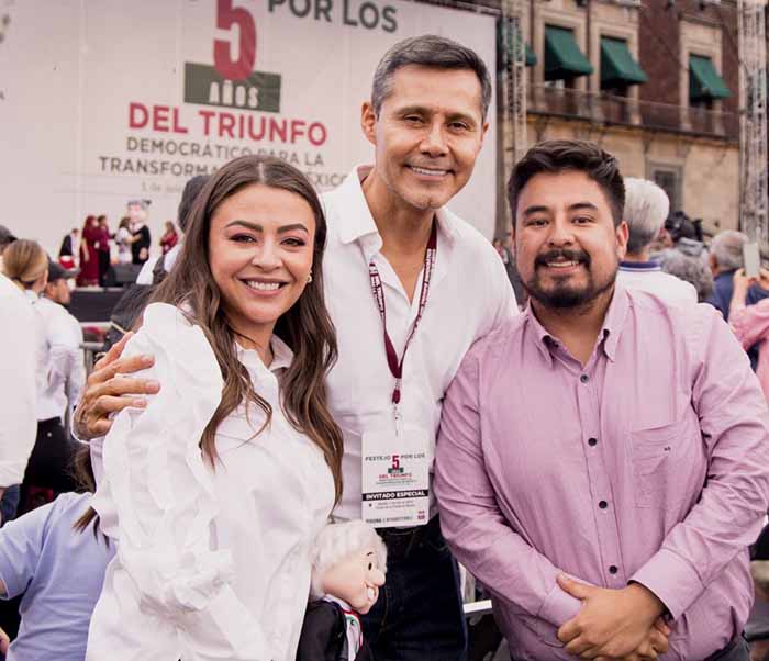 Ciudad de México.- Sasil de León participó en la celebración del 5.º aniversario del triunfo histórico del presidente Andrés Manuel López Obrador, en la que más de 250 mil personas se congregaron en el emblemático Zócalo de la Ciudad de México.
