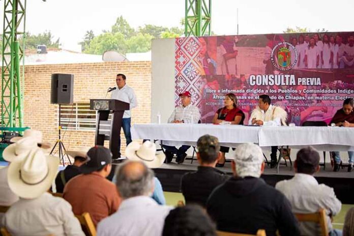 Con este proceso de consulta, el Poder Legislativo de Chiapas Busca generar la participación de los pueblos y comunidades indígenas y afromexicanas, así como el acceso a información oportuna y en su lengua para que emitan sus opiniones, propuestas y recomendaciones en torno a la propuesta de iniciativa en materia electoral en relación con sus derechos humanos y colectivos plasmados en diferentes leyes. Boletín Oficial