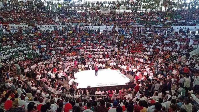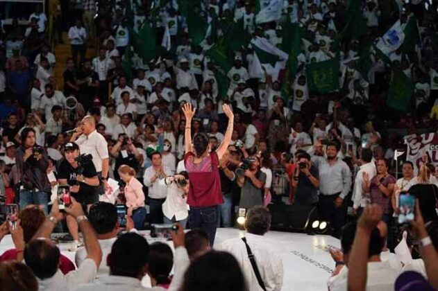 Este Sábado Miles de Personas Acudieron al Palenque de la Feria Mesoamericana Para Apoyar a Claudia Sheinbaum.