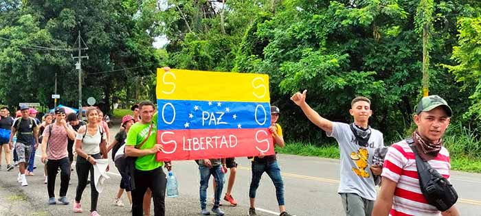 Se calcula que el contingente lo integran unas dos mil personas, la mayoría de ellos jóvenes de origen venezolano, pero también de Nicaragua, El Salvador y Honduras.