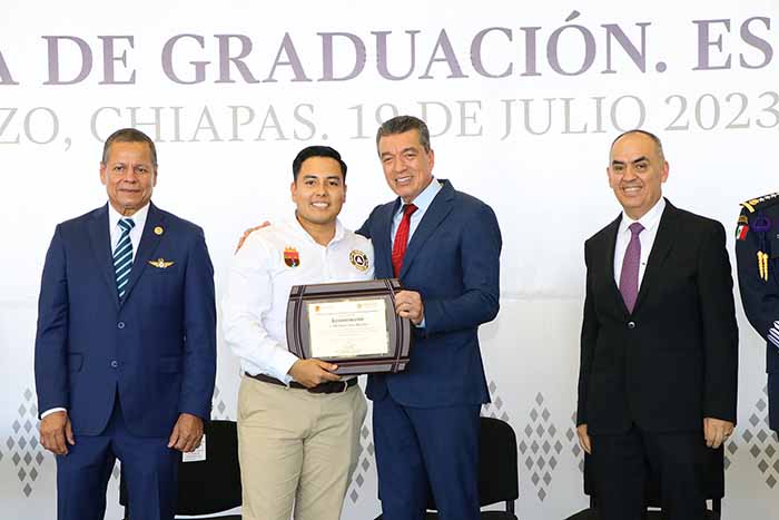“Los sueños se concretan cuando hay voluntad y se toma la decisión de caminar de frente, y ahora que ya tienen las alas, no paren de volar porque eso es lo que da la educación, alas hacia la independencia y a labrar un futuro con dignidad. Sé que donde se encuentren pondrán en alto el nombre de Chiapas porque salieron bien preparados, con gran formación y disciplina, es una garantía que darán seguridad a sus pasajeros”, dijo a las y los graduados.