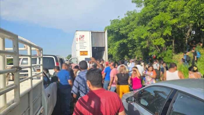 Al aproximarse al vehículo, los elementos no encontraron al conductor, pero escucharon gritos provenientes de la caja seca de la unidad, por lo que de inmediato abrieron el compartimento de carga y se encontraron con las personas, a quienes ayudaron a salir; algunas presentaban síntomas de deshidratación, como consecuencia del hacinamiento y las altas temperaturas.