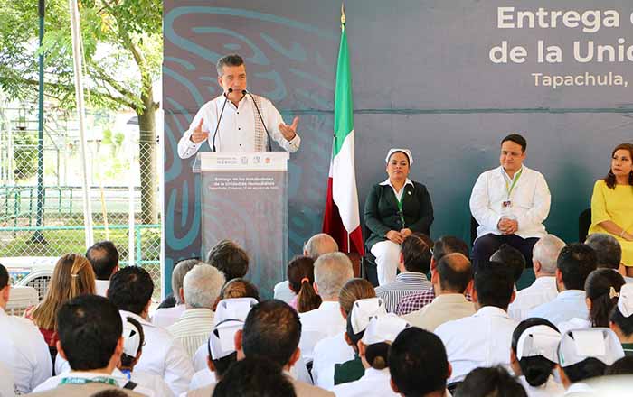 El gobernador Rutilio Escandón Cadenas y el director general del Instituto Mexicano del Seguro Social (IMSS), Zoé Robledo Aburto, inauguraron la Unidad de Hemodiálisis dentro de la Unidad de Medicina Familiar (UMF) No. 1 de Tapachula, que contribuirá al fortalecimiento de los servicios médicos especializados para la atención oportuna de la enfermedad renal, en beneficio de la población de los municipios de las regiones Istmo-Costa y Soconusco.