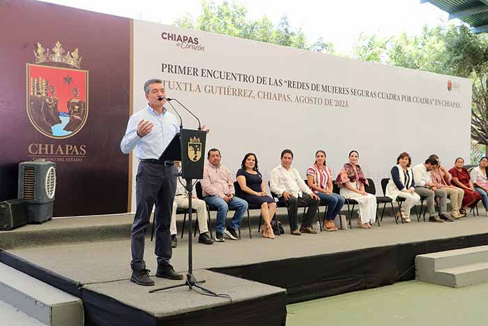 En el marco del Primer Encuentro de las Redes de Mujeres Seguras Cuadra por Cuadra, el gobernador Rutilio Escandón Cadenas sostuvo que el gobierno de la Cuarta Transformación impulsa políticas públicas equitativas e incluyentes, que garantizan a las mujeres el cumplimiento de sus derechos y la oportunidad de ser parte de la construcción de un Chiapas y un México con justicia, paz y prosperidad.