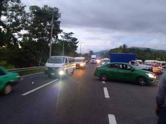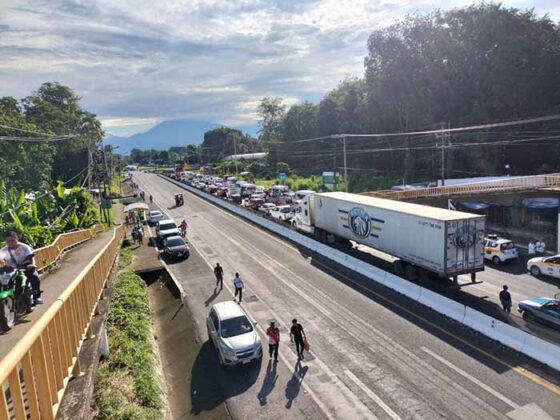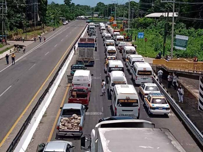 Este lunes alrededor de las 7 de la mañana en el tramo carretero Huixtla – Tapachula, a la altura del desvío de la Cruz de Oro, iniciaron un bloqueo carretero transportistas en la modalidad de volteos, combis y taxis, inconformándose por el pirataje en el transporte.