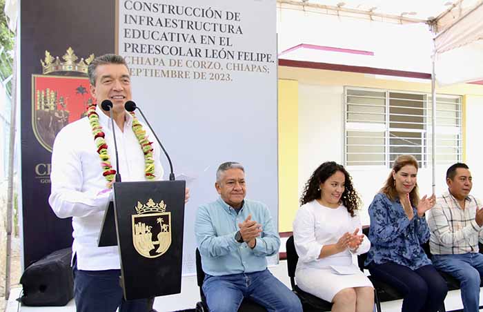 En Chiapa de Corzo, el gobernador Rutilio Escandón Cadenas inauguró la construcción del Jardín de Niñas y Niños “León Felipe”, donde destacó que el Gobierno de la Cuarta Transformación ha asumido el compromiso de invertir en materia educativa, con el objetivo de garantizar a la niñez y juventud de Chiapas una educación digna y de calidad, a través de espacios escolares seguros, modernos y funcionales.