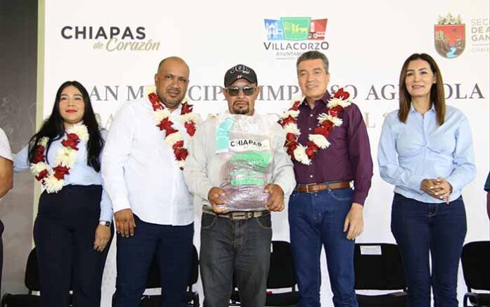 Durante la entrega de insumos para productores del municipio de Villa Corzo, como parte del Programa Impulso Agrícola para la Siembra del Frijol 2023, el gobernador Rutilio Escandón Cadenas informó que, con el fortalecimiento de este apoyo, un total de 5 mil productoras y productores podrán sembrar en tiempo y forma este producto básico para garantizar la soberanía alimentaria en el estado y el país.