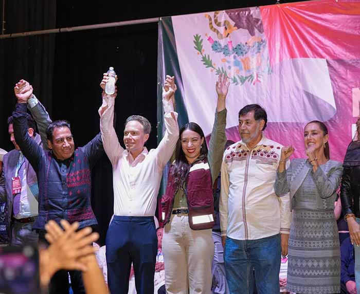 En el teatro Million Dollar, al que se dieron cita miles de migrantes simpatizantes de Morena, Eduardo Ramírez saludó al dirigente nacional de Morena, Mario Delgado Carrillo y al senador con licencia, Manuel Velasco Coello con quienes coincidimos en que la prioridad es respaldar el proyecto de continuidad de la cuarta transformación del pueblo mexicano.