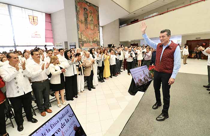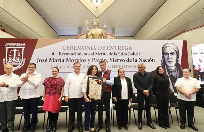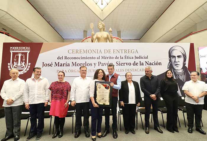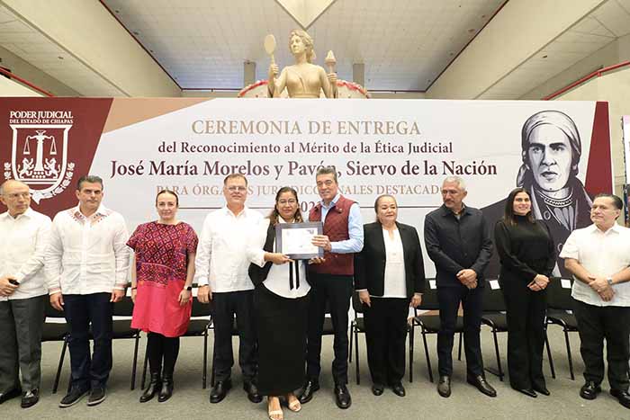 En la entrega del reconocimiento al Mérito de la Ética Judicial “José María Morelos y Pavón, Siervo de la Nación”, a órganos jurisdiccionales destacados, el gobernador Rutilio Escandón Cadenas sostuvo que es satisfactorio constatar que las y los consejeros, magistrados, jueces, y trabajadores del Poder Judicial hacen un trabajo respetable y honorable, llevando en todo su momento un comportamiento ético en la investidura profesional y en lo personal.