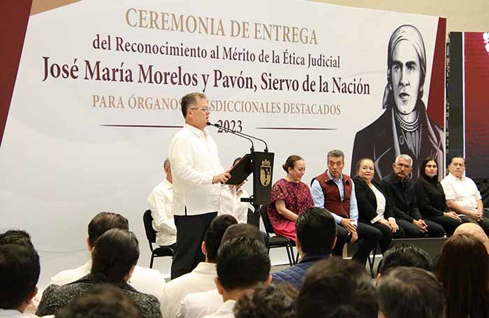 Subrayó que es especial que el reconocimiento lleve el nombre del prócer José María Morelos y Pavón, siervo de la nación, quien entregó su vida en la defensa de la justicia y los tribunales, y enseñó que se puede entrelazar la ética con el respeto de las normas jurídicas, y que se puede caminar con la confianza de que las instituciones públicas van a defender a las personas cuando les asiste la razón.