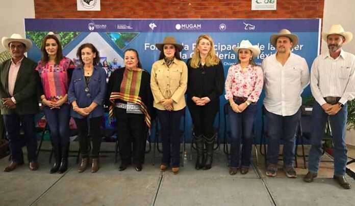 La titular de la SAGyP, Zaynia Andrea Gil Vázquez, acompañada del secretario de la Confederación Nacional de Organizaciones Ganaderas, José Ernestino Mazariegos Zenteno, que acudió en representación de Homero García de la Yata, presidente de la CNOG; de la presidenta de la Mesa Directiva de la LXVIII Legislatura del Congreso local, la Diputada Sonia Catalina Álvarez; del presidente de la Asociación de Criadores de Razas Puras del Estado de Chiapas, Manuel Espinosa Poo; y de la representante No Gubernamental del Sistema Productos Bovinos Leche, Consuelo González Pastrana, explicó que, es la primera vez que se realiza en Chiapas un evento de tal magnitud, que pretende incentivar y visibilizar la contribución significativa de las mujeres en los diversos aspectos de la ganadería.