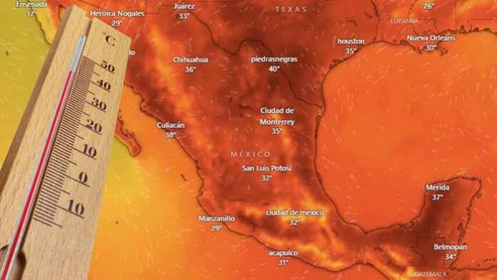 35 a 40°C: Aguascalientes, suroeste del Estado de México, Guanajuato, Querétaro, Zacatecas.