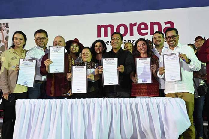 En otro momento, la secretaria general del CEN de Morena, Carolina Rangel Gracida, presentó el Decálogo para Autoridades Emanadas de Morena, a través del cual las y los servidores públicos se comprometen a regir su conducta bajo los 10 principios del movimiento firmado por las y los legisladores morenistas presentes.
