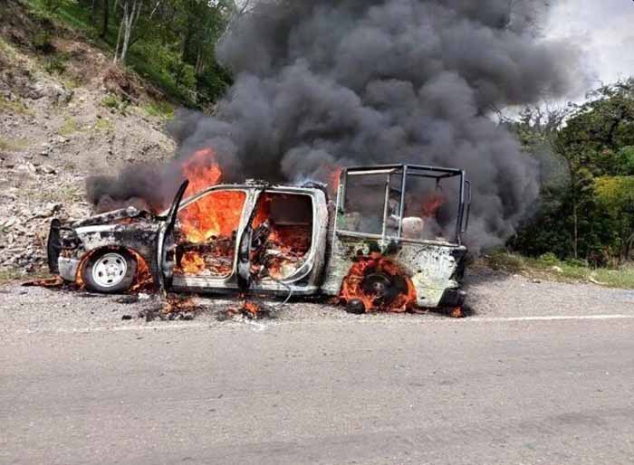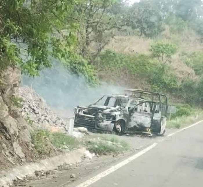 Los delincuentes huyeron con destino a Guatemala dejando en el lugar una patrulla calcinada con 5 personas sin vida a quienes fueron identificadas como: