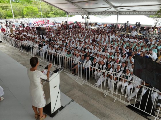 “Les voy a dar una buena noticia en Campeche, que ahí vamos con el IMSS Bienestar poco a poco. En muy pocos días se contratan los 11 médicos faltan para que todos los centros de salud abran los siete días de la semana, 365 días del año”, agregó.