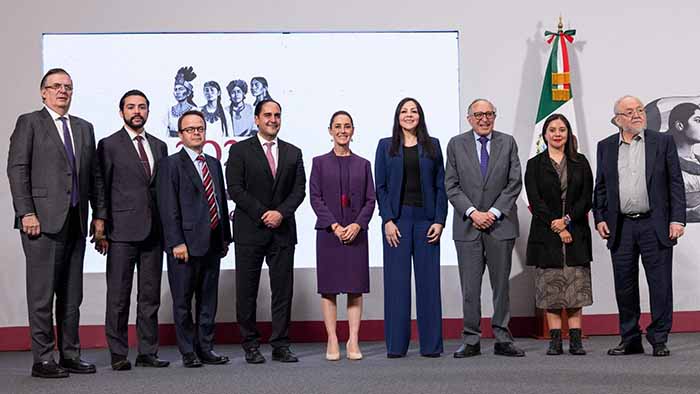 Acompañado de una lámina, la presidenta Sheinbaum Pardo colocó algunos de los antecedentes del voto de la mujer, donde resaltó la lucha por el sufragio femenino, el primer estado en reconocer su derecho, entre otros.