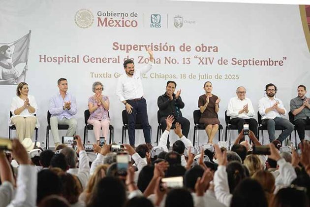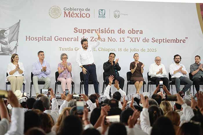 La Presidenta de México, Claudia Sheinbaum Pardo, encabezó la supervisión de obra Hospital General de Zona (HGZ) No. 13 “XIV de Septiembre” del Instituto Mexicano del Seguro Social (IMSS) de Tuxtla Gutiérrez, Chiapas, que avanza en su construcción y que será inaugurado el 14 de septiembre de 2025 a fin de operar con 144 camas y 62 consultorios de especialidades.