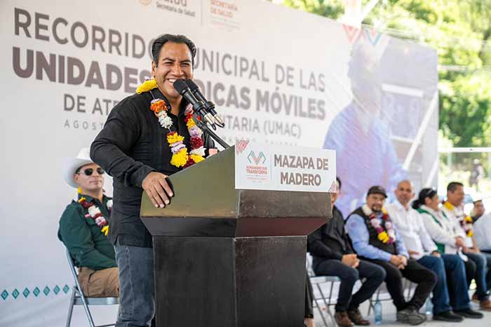 Durante una gira de trabajo por la región Sierra Mariscal, el gobernador Eduardo Ramírez Aguilar llevó las Unidades Médicas Móviles de Atención Comunitaria (UMAC) al municipio de Mazapa de Madero, reafirmando su compromiso de mantener un gobierno itinerante y de territorio, que garantice el derecho humano a la salud, especialmente para quienes habitan en las zonas más apartadas de Chiapas.