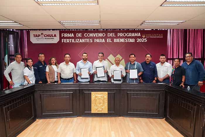 En el marco de la firma del convenio de colaboración del Programa Fertilizantes para el Bienestar 2025, llevado a cabo entre el Ayuntamiento de Tapachula y la Secretaría del Bienestar, el alcalde Yamil Melgar, aseveró que con estas acciones, se impulsa la autosuficiencia alimentaria y la mejora en los ingresos de los productores locales.