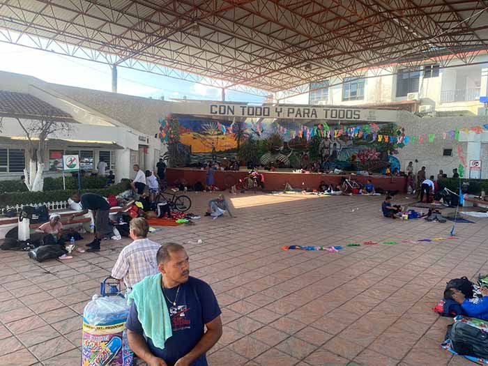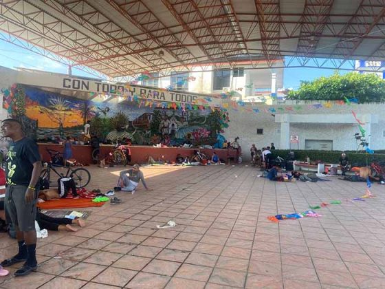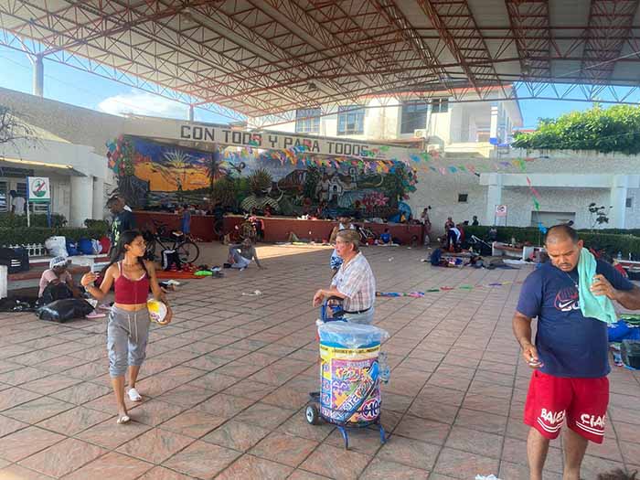 Pijijiapan, Chiapas; 13 de Agosto del 2025.- La caravana migrantes que recorre la Costa de Chiapas desde hace una semana llegó ayer miércoles al mediodía a la cabecera municipal de Pijijiapan, donde descansaron en el parque central de esta localidad.