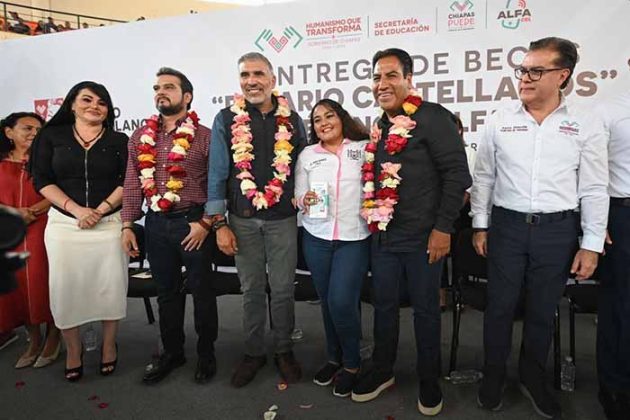 El gobernador Eduardo Ramírez Aguilar encabezó la entrega de Becas Rosario Castellanos a personas que están aprendiendo a leer y escribir, como parte del programa Chiapas Puede, así como de celulares Alfacel para estudiantes de nivel medio superior que participan como alfabetizadores.