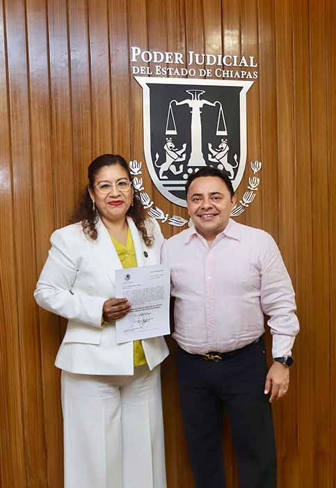 El magistrado presidente del Poder Judicial del Estado de Chiapas, Juan Carlos Moreno Guillén, sostuvo una reunión con la recién nombrada magistrada Leticia Pérez López, quien se desempeñaba como jueza de lo familiar.