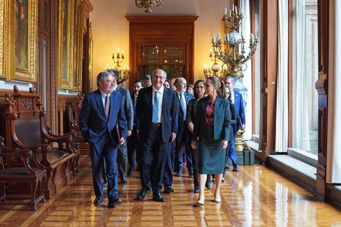 Ciudad de México, 28 agosto de 2025.- La Presidenta de México, Claudia Sheinbaum Pardo, recibió este jueves en Palacio Nacional a una delegación de Brasil encabezada por el vicepresidente Geraldo Alckmin.