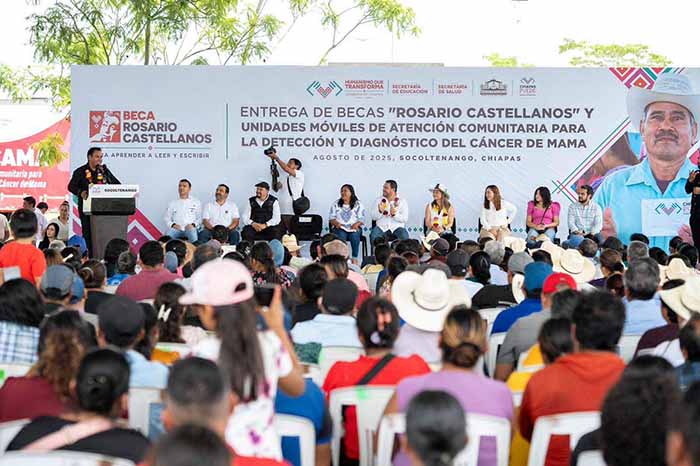 El secretario de Educación, Roger Mandujano Ayala, informó que en este municipio se entregaron las primeras 422 becas a personas en proceso de alfabetización, de un total de más de mil inscritos. Resaltó que, a petición de las autoridades locales, se abrirán más círculos de estudio para que un número creciente de habitantes aprenda a leer y escribir, con el objetivo de que Socoltenango sea territorio libre de analfabetismo.
