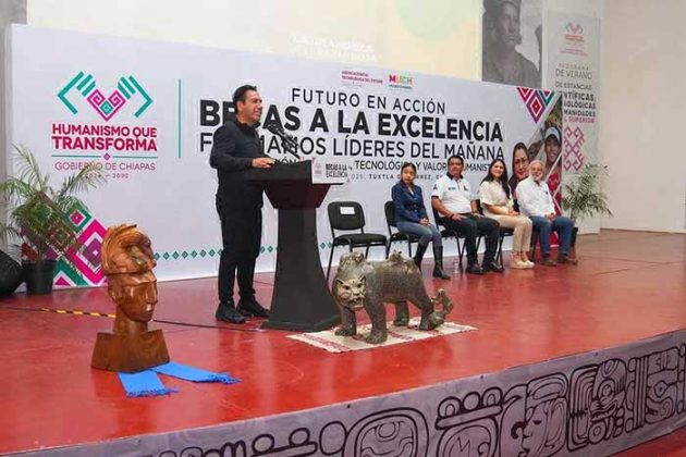 Durante la entrega de becas para incentivar la vocación humanista, científica y tecnológica en estudiantes de excelencia, el gobernador Eduardo Ramírez Aguilar subrayó que el gobierno de la Nueva ERA se sustenta en los valores de la educación, por lo que refrendó su compromiso de apoyar el talento y el desarrollo de la niñez y juventud chiapaneca.