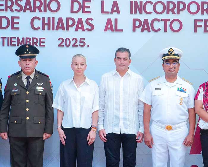 “Asumamos que en esta Nueva ERA la historia no es pasado, es responsabilidad de nuestro presente. Honremos a quienes nos dieron patria y federación con hechos y resultados; reafirmemos la grandeza de Chiapas, transmitamos a las nuevas generaciones la importancia de la memoria histórica, refrendemos nuestra convicción de seguir fortaleciendo la unidad, la gobernabilidad y la justicia social en nuestro amado estado. No olvidemos nunca el espíritu federalista y republicano que nos dio patria, tampoco que la fraternidad y el diálogo son nuestras raíces y, sobre todo, que la paz es y será lo más preciado siempre”, sostuvo.
