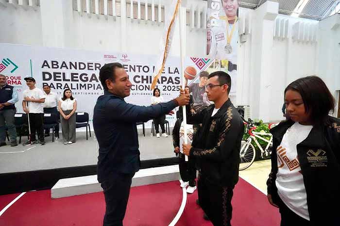 Durante el abanderamiento de la Delegación Chiapas que participará en la Paralimpiada Nacional 2025 en Aguascalientes, el gobernador Eduardo Ramírez Aguilar subrayó que el gobierno de la Nueva ERA ha asumido el compromiso de respaldar a las y los atletas con discapacidad, con el objetivo de que cumplan sus sueños deportivos y pongan en alto a Chiapas.