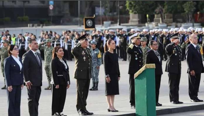 Ciudad de México; 19 de Septiembre.- La presidenta de México, Claudia Sheinbaum Pardo, encabezó este viernes el izamiento de la Bandera Nacional en la plancha del Zócalo capitalino, en memoria de las víctimas de los sismos ocurridos en 1985 y 2017.