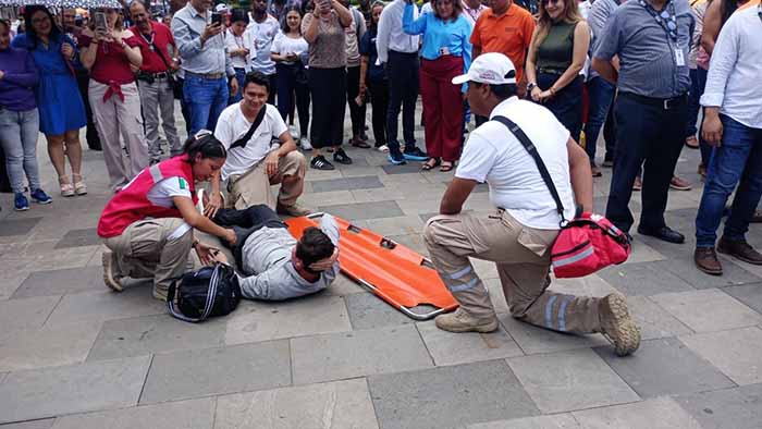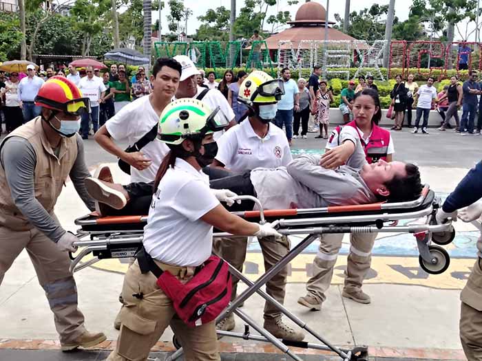 También se presentaron bomberos y ambulancias de urgencias médicas, haciendo más real las acciones de un posible sismo de magnitud 8.1 con epicentro en el Estado de Michoacán.