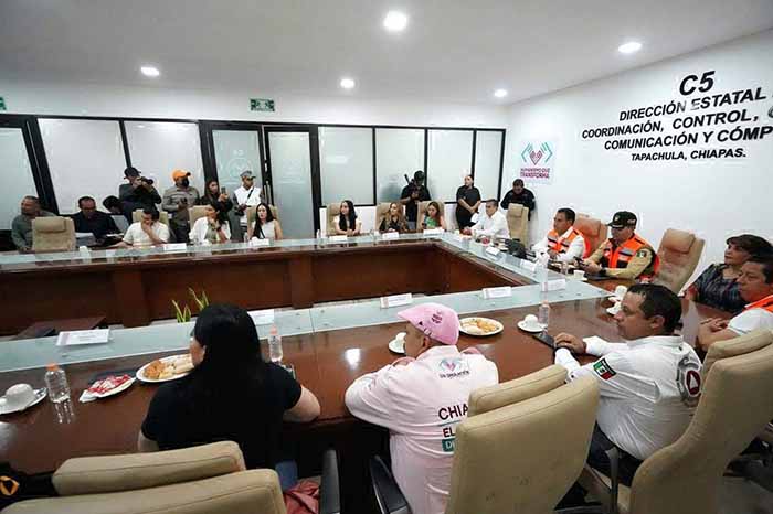 También asistieron el director general del Instituto de Comunicación Social y Relaciones Públicas, José Luis Sánchez García; la oficial mayor del Estado, Viridiana Figueroa García; el subsecretario de Inteligencia e Investigación, José Octavio García Macías; el asesor del gobernador, Manuel Santín Molina; la coordinadora de Atención Ciudadana de la Oficina del Gobernador, Anjuli Acosta Guillén; la secretaria privada del Titular del Ejecutivo, Patsy Carrillo; el presidente municipal de Tapachula, Yamil Melgar Bravo; y el secretario de Protección Civil Municipal, Demetrio Martínez López, entre otros.Boletín Oficial