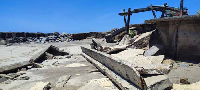 “Ustedes pueden constatar que ya el mar se comió gran parte del malecón, hay zonas que están a punto del colapso, faltan metros para que el mar empiece afectar la carretera que conduce a las escolleras, y que es la principal vía de acceso a esa zona de palapas”, comentó.