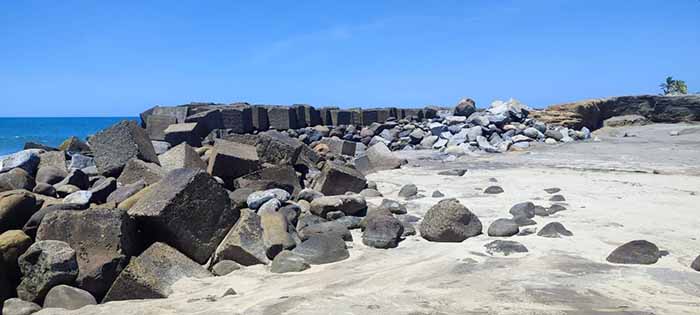 Sin embargo, con mucha tristeza están constatando que la obra de enrocamiento es solo para proteger el canal de Puerto Chiapas, donde entran los cruceros y embarcaciones de carga a la zona de muelle.