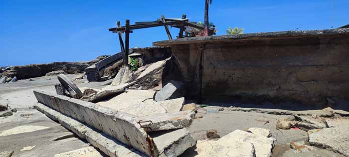 Así como parte del malecón, aun lado de dicha plaza, también ha sido erosionado y destruido por el fuerte oleaje.