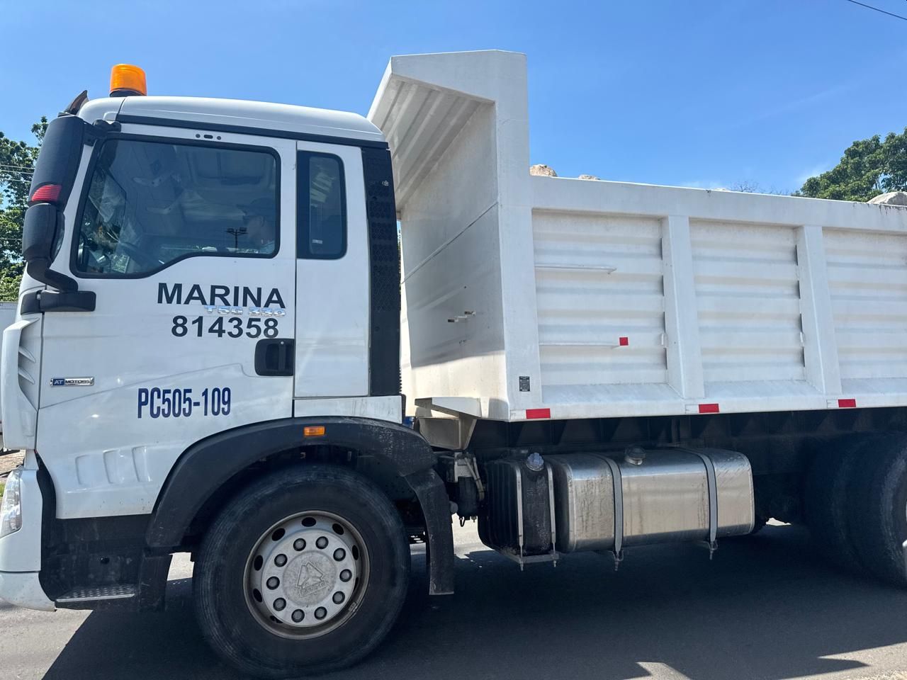 Tapachula, Chiapas 20 de Octubre del 2025.- Las empresas que ganaron la licitación para la construcción de un rompe olas en las escolleras en Puerto Madero, así como la construcción de varios tramos de las líneas férreas del tren interoceánico (línea K) en la costa de Chiapas, en contubernio con algunas autoridades de la Marina; están desplazando a los concesionarios del transporte en su modalidad de volteos originarios de la costa-Soconusco.