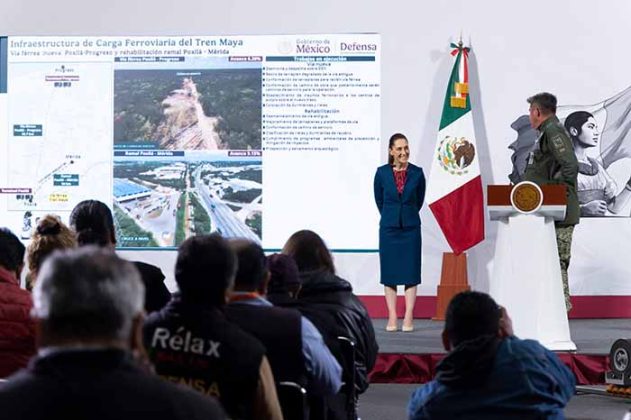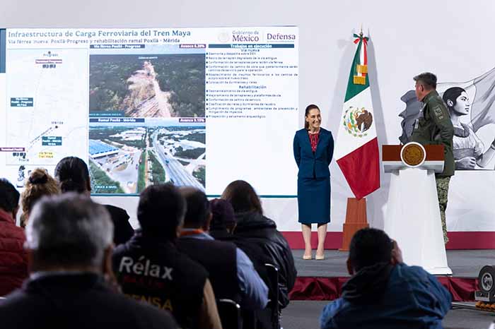 El comandante del Agrupamiento de Ingenieros Felipe Ángeles, general de División, Gustavo Ricardo Vallejo Suárez, destacó que se tiene un avance de cerca del 10 por ciento del Ciudad de México-Pachuca generando 8 mil 288 empleos y del 4.8 por ciento del Ciudad de México-Querétaro creando 8 mil 416 empleos. Además, informó que están próximos a concluir los estudios de ingeniería básica del tren Ciudad de México–Pachuca; Ciudad de México–Querétaro; Querétaro-Irapuato y del Saltillo-Nuevo Laredo. Respecto a la construcción de la infraestructura de carga del Tren Maya, agregó que se tienen 7 frentes de trabajo, cuyos trabajos para la construcción de las terminales Palenque, Poxilá, Progreso y Cancún han generado 9 mil empleos directos. Boletín Oficial