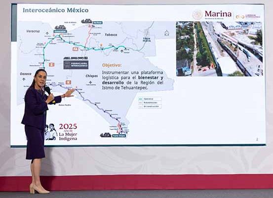 La Presidenta de México, Claudia Sheinbaum Pardo, resaltó que en noviembre se inaugura el primer tramo de la Línea K del Tren Interoceánico y se avanza con el Gobierno de Guatemala para que dicha línea llegue al país centroamericano. Mientras que el tramo Roberto Ayala–Dos Bocas de la Línea FA permitirá llevar parte de la producción de la Refinería Olmeca al sureste del país.